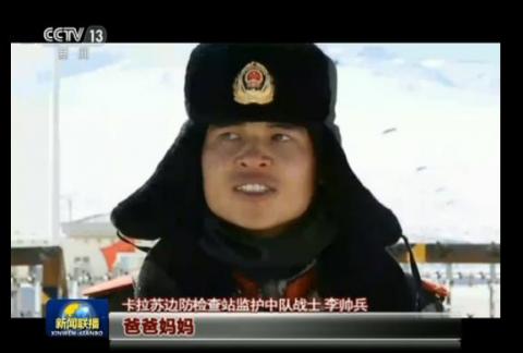 卡拉苏边防检查站监护中队战士李帅兵:爸爸、妈妈,每次打电话的时候非常想念你们,但是,又不能说出口,怕你们为我担心。所以,我会坚强!爸爸妈妈,你们放心,儿子一定会努力工作!