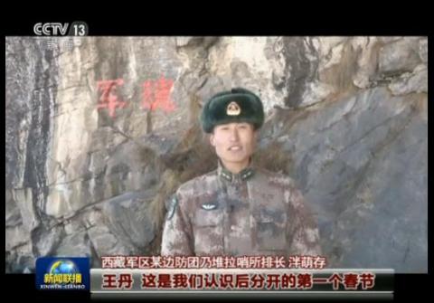 西藏军区某边防团乃堆拉哨所排长泮萌存:王丹,这是我们认识后分开的第一个春节。从开始到现在,我陪伴你的日子屈指可数。谢谢你的理解和支持。趁着春节,我们来一个双喜临门——嫁给我吧!