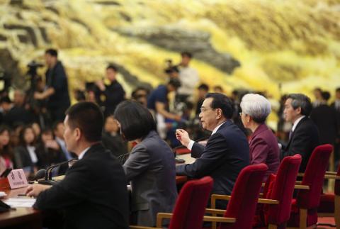 李克强总理在记者会上回答问题 摄影中新社刘震