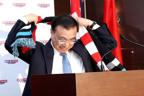 "我戴上两条围巾就是要表明,中国人民对所有澳大利亚人民都满怀热情,无论哪个球队获胜,作为中国人,我们都会为他喝彩!"中国总理的态度,引来澳大利亚球迷全场热烈的掌声和欢呼声。