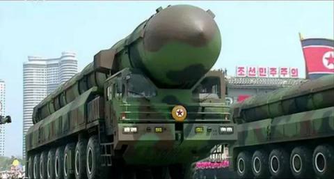 朝鲜在15日太阳节阅兵式上首次展示外形类似俄"白杨"导弹的新型洲际导弹。