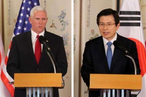 17日,美国副总统彭斯与韩国代总统黄教安会面后共同发表联合声明。