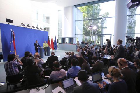 "中德双方愿意本着相互尊重、平等合作的态度解决分歧,共同为人类文明进步作出努力。"李克强说。(新京报特约记者 储思琮)