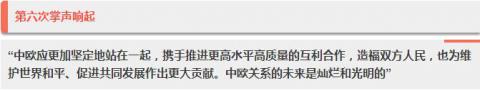 中欧关系走过40多年历程,逐步迈入成熟稳健的发展轨道。2014年,习近平主席访问欧盟期间,提出共同打造中欧和平、增长、改革、文明四大伙伴关系,为中欧合作注入了新的强大动力。现在,中欧全方位合作稳步推进,经贸合作硕果累累,人员往来频繁密切。