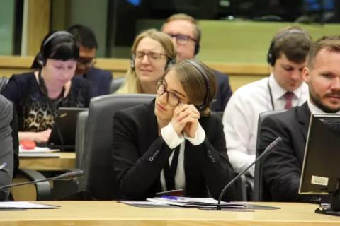 图为与会者认真聆听李克强总理在中欧工商峰会上的演讲。吴刚摄