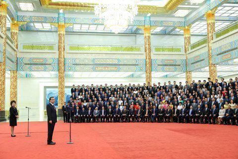 6月12日上午,李克强在人民大会堂金色大厅会见出席第二届世界华侨华人工商大会全体代表并发表讲话。