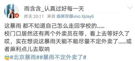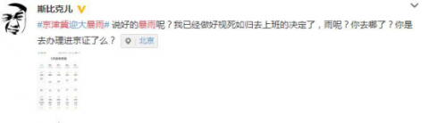 每次极端天气的来临似乎都会引起网友热议,也曾经有网友诙谐调侃:"哪里下雨最大?朋友圈!"。本次的"京津冀大暴雨"同样在各大社交平台引起舆论不断发酵,而网友大多都在质疑这场暴雨会不会"爽约"?