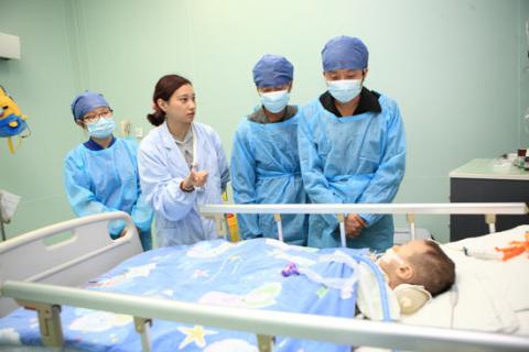 血液科交班,患者总数29人,本班新入院患者2人,出院0人;7床,低蛋白、发热,给予白蛋白10g,美林速尿;9床发热,美林对症……每天早上7点,上海儿童医学中心(以下简称"儿医中心")血液科交班完毕后,专职医务社工李娅茜的工作就开始了。