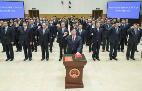 "希望大家牢记这一时刻,把宪法和刚才的誓言铭刻于心,真正融入自己的思想,贯穿于工作之中。"李克强总理对62位宣誓人说。