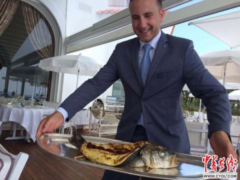 在伊甸豪海角酒店,主人让记者品尝烤鲈鱼。海鲈鱼是"蔚蓝海岸"地区特产之一。摄影:吴勋高鑫诚