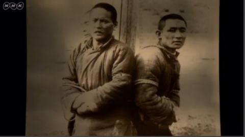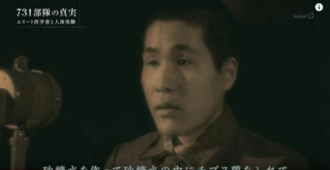 解说员:"731部队"实施实验的(地点),是位于中国东北部旧满洲的秘密研究所。活生生地被当成试验材料而死去的人,据说达到了3000人以上。为何人体试验会被推进到如此规模?NHK电视台从国内外收集到了数百件资料。浮出水面的,不仅是日本军人,还有从东京大学、京都大学等调集而来的"精英医学者",(他们)也主导着人体试验这一实际事态。