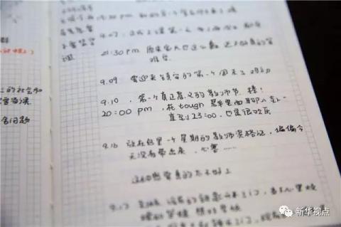 这是8月22日拍摄的陈莹丽日记本里的内容,上面写着"第一个真正意义的教师节,棒!"。新华社记者 张铖 摄