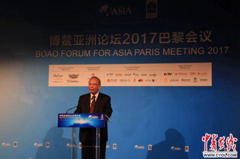 曾培炎在博鳌亚洲论坛巴黎会议开幕式上讲话。孟小珂摄