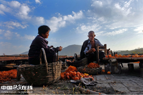 图为河南省荥阳市崔庙镇郑岗村村民通过种植柿子脱贫致富,柿饼、柿霜糖、柿叶茶等产品远销日本、东南亚等地。摄影/宋洪