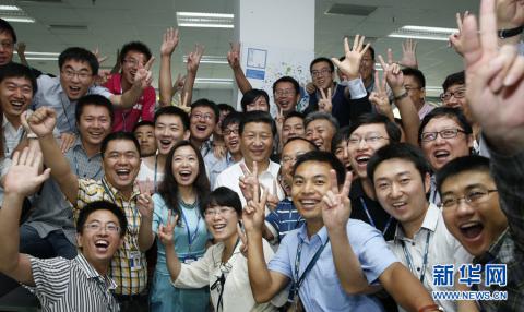 2013年8月29日,习近平在东软集团(大连)有限公司同年轻员工亲切合影。 新华社记者 鞠鹏 摄