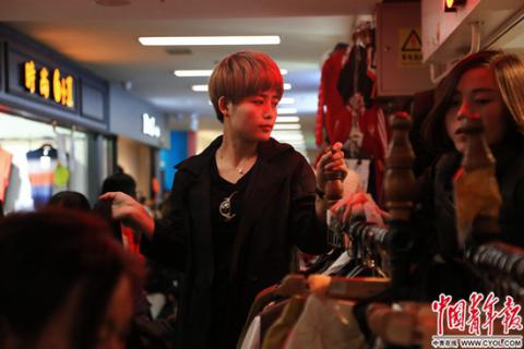3年前,梦梦从河南信阳来到一直向往的北京,她在万通商城批发过围巾、摆过地摊儿。经人介绍,她来到“动批”应聘导购,老板毫不犹豫许诺的5000元工资让她从此在这里扎了根,现在月收入过万。梦梦需要第二天5点起床准备开张,语气中透着疲惫的她讲话时,印着“脾气极差”和“性格极好”的耳坠一摇一摇,“没事儿,我睡一觉就好了!”