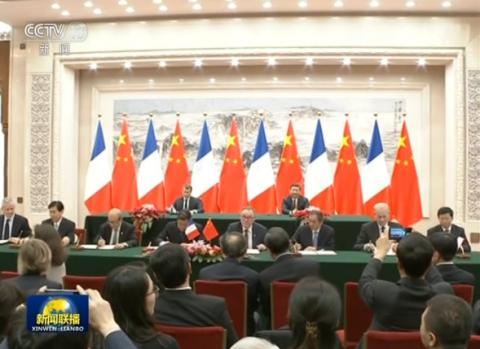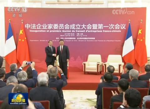 会谈后,两国元首共同会见了出席中法企业家委员会首次会议的企业家代表并分别致辞。习近平在致辞中指出,中国经济仍然是全球经济增长的主要动力源和稳定器。中国将继续贯彻创新、协调、绿色、开放、共享的发展理念,坚持对外开放的基本国策,坚持高质量发展,发展更高层次的开放经济。中方愿同法方和欧方一道,秉持相互理解、合作共赢理念,坚持双向开放大方向,要携手完善以开放为导向、以合作为动力、以共享为目标的全球经济治理体系。