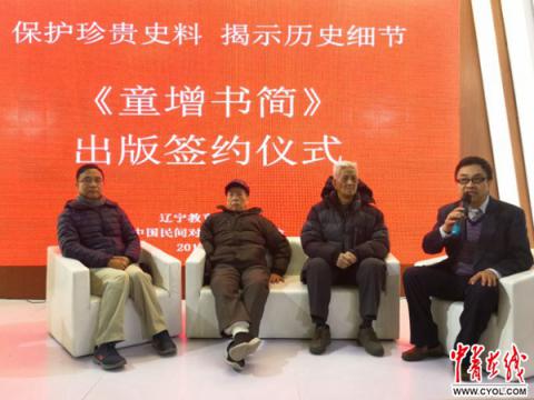中青在线讯(中国青年报·中青在线记者 张蕾)12日上午,在2018年北京图书订货会辽宁出版集团展区内,辽宁教育出版社与中国民间对日索赔联合会会长童增举行了《童增书简》出版签约仪式。出席仪式的还有全国政协委员、杨虎城将军后代杨瀚,劳工联谊会副会长、幸存掳日劳工赵宗仁,福建永安无差别大轰炸幸存者高熊飞。