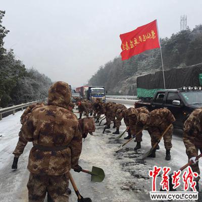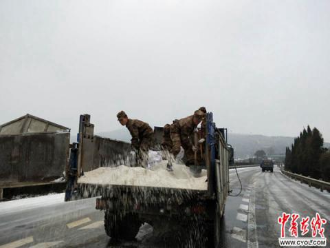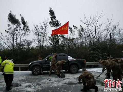 湖南省高速公路交警局郴州支队警力则全部上路,疏导交通,快速处理事故。进驻现场的民兵排列两行,采用撒盐和人工铲冰的方式,分段进行清雪疏路作业。周启雨说,在29日8时50分,京港澳高速公路往广州方面南下的路段被打通。