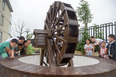 合肥,美丽的乡村幼儿园迎来新生,孩子们在开学前参与教育培训,参观和体验园内设施,迎接新学期的到来。位于安徽合肥三十岗乡的安庆路幼儿园桃蹊分园依托乡村资源,以“亲近自然”的方式打造水车、攀岩等设施,为农村孩子们营造开放式、探索性的成长环境。视觉中国供图