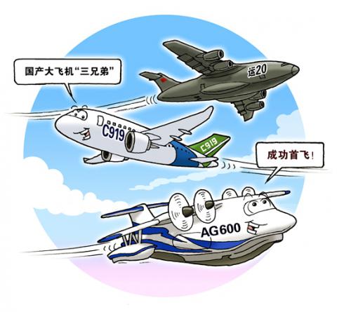 2017年12月24日上午9时39分许,蓝白涂装的大型水陆两栖飞机——“鲲龙”AG600从珠海金湾机场启动,滑行,一飞冲天。十年磨砺,运20、C919、AG600,中国大飞机“三兄弟”终于蓝天聚首。视觉中国供图