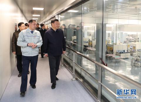中华民族传统节日农历春节来临之际,中共中央总书记、国家主席、中央军委主席习近平来到四川考察调研,看望慰问各族干部群众,向全国各族人民致以美好的新春祝福。这是2月11日下午,习近平在成都中电熊猫显示科技有限公司考察。新华社记者 谢环驰 摄