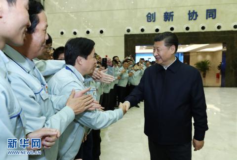 中华民族传统节日农历春节来临之际,中共中央总书记、国家主席、中央军委主席习近平来到四川考察调研,看望慰问各族干部群众,向全国各族人民致以美好的新春祝福。这是2月11日下午,习近平在成都中电熊猫显示科技有限公司考察时同员工亲切握手。新华社记者 鞠鹏 摄