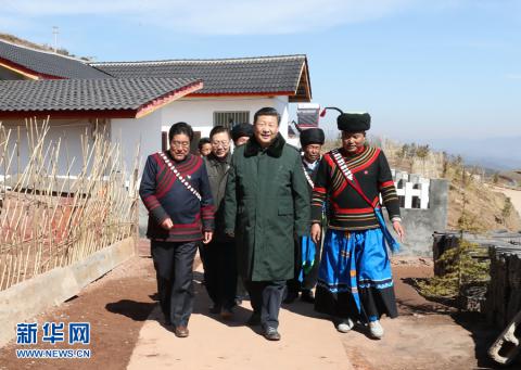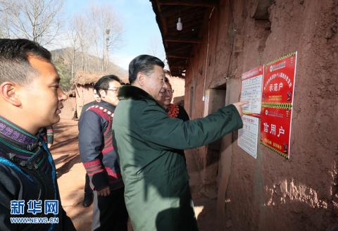 中华民族传统节日农历春节来临之际,中共中央总书记、国家主席、中央军委主席习近平来到四川考察调研,看望慰问各族干部群众,向全国各族人民致以美好的新春祝福。这是2月11日上午,习近平在凉山彝族自治州昭觉县解放乡火普村了解易地扶贫搬迁和彝家新寨建设情况。新华社记者 鞠鹏 摄