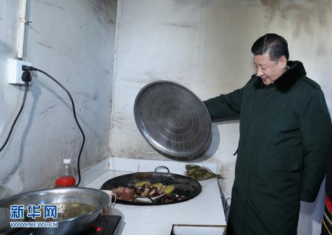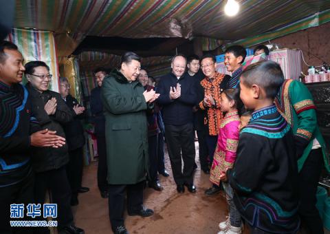 中华民族传统节日农历春节来临之际,中共中央总书记、国家主席、中央军委主席习近平来到四川考察调研,看望慰问各族干部群众,向全国各族人民致以美好的新春祝福。这是2月11日上午,习近平在凉山彝族自治州昭觉县三岔河乡三河村贫困户节列俄阿木家中看望。新华社记者 鞠鹏 摄