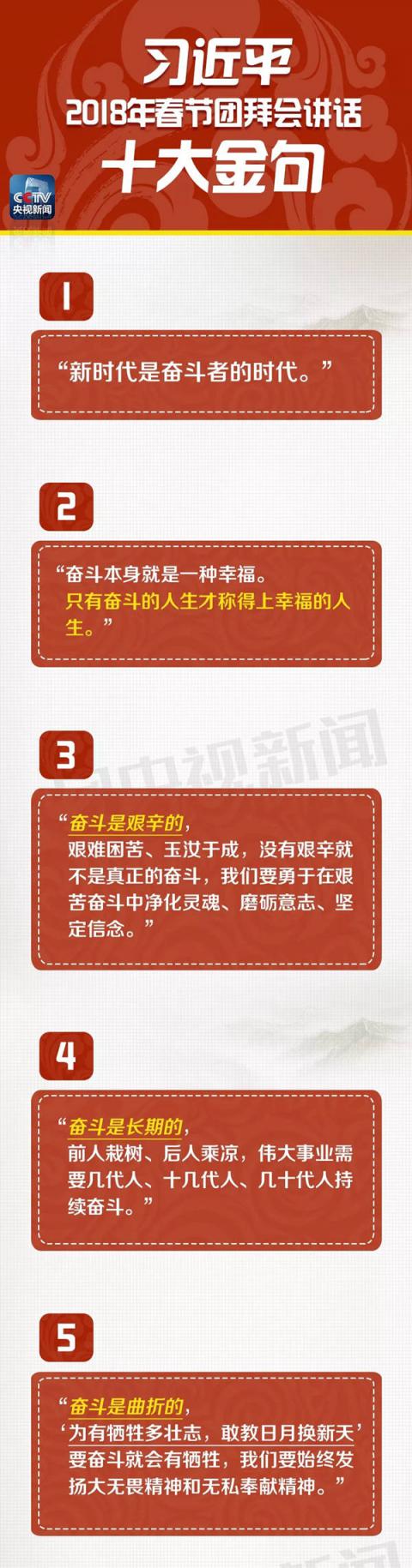 央视新闻梳理了习近平总书记此次在春节团拜会讲话的“十大金句”,新鲜出炉,一起学起来。
