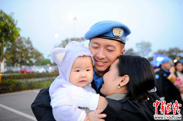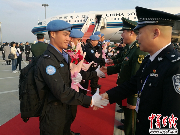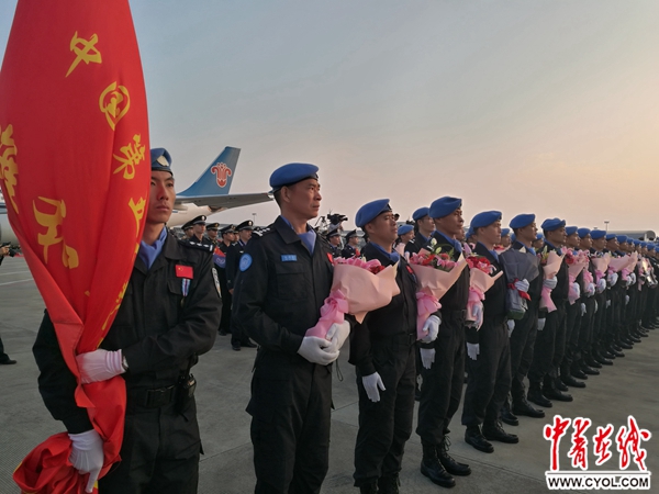 中青在线南宁3月1日电(中国青年报·中青在线记者 何春中)北京时间3月1日17时45分,中国第五支赴利比里亚维和警察防暴队圆满完成为期一年的国际维和任务,乘包机抵达广西南宁吴圩国际机场。公安部维和警察领导小组在南宁举行隆重的欢迎仪式,迎接蓝盔勇士载誉归来。