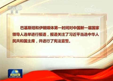 巴基斯坦和伊朗媒体第一时间对中国新一届国家领导人选举进行报道,报道关注了习近平当选中华人民共和国主席,并进行了宪法宣誓。