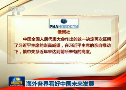 俄新社报道说,中国全国人民代表大会作出的这一决定再次证明了习近平主席的崇高威望,在习近平主席的亲自推动下,俄中关系近年来达到前所未有的高度。