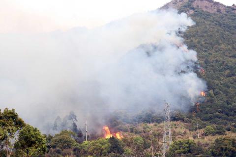 据勘察,火场植被以灌木丛和毛竹为主,林火为中强度地表火并伴有树冠火,地形相对复杂,扑救难度大。火线长约2000米,过火面积约300余亩,局部地区出现上山火现象,火场北侧有大片高压电缆,西南侧为人口密集的居民区,如不及时扑灭可能造成严重后果。