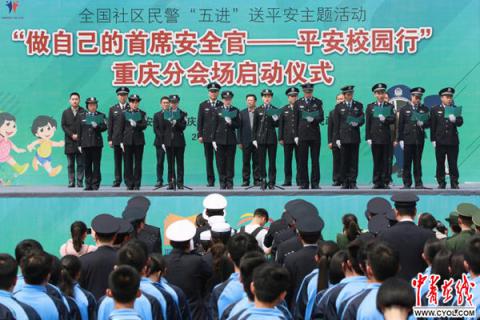 据介绍,3月26日是“全国中小学生安全教育日”,按照公安部统一部署,全国各地同步开展“做自己的首席安全官”平安校园行活动启动仪式。在重庆站启动仪式中,市公安局、市教委、市关工委、共青团重庆市委员会、市妇联等单位相关领导来到现场为平安校园行活动加油,学生代表和社区民警代表分别宣读《校园安全文明倡议书》《守护校园安全重庆宣言》。
