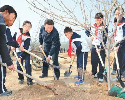 习近平强调,每一个公民都要自觉履行法定植树义务,各级领导干部更要身体力行,充分发挥全民绿化的制度优势,因地制宜,科学种植,加大人工造林力度,扩大森林面积,提高森林质量,增强生态功能,保护好每一寸绿色。