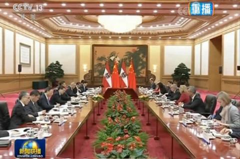 欢迎仪式后,习近平主席同范德贝伦总统举行会谈。两国元首一致决定,建立中奥友好战略伙伴关系,推动中奥务实合作迈上新台阶。奥地利总理库尔茨参加。