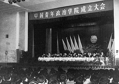 二十世纪八十年代,在加强党的干部队伍革命化、年轻化、知识化、专业化建设大潮中,为更好地培养青年群众工作干部和思想政治工作专门人才,中央团校于1983年举办首届大专班。1985年12月,在党中央直接领导下,国家教委批准在中央团校基础上建立中国青年政治学院,同时继续保留中央团校的校名,承担普通高等教育与共青团干部培训的双重职能。时任中共中央顾问委员会副主任、中央党校校长王震同志代表党中央在中国青年政治学院成立大会上讲话,要求把学院建设成为“青年政治工作干部的摇篮和青年研究工作的基地”,“培养出的学生首先应是坚定、清醒、有作为的年轻的马克思主义者”(见图10)。