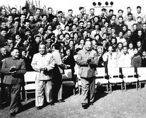 图9:1962年4月,毛泽东、周恩来、朱德、邓小平等接见第12期学员和教工