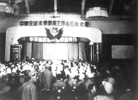 图5:毛泽东同志在怀仁堂中央团校第一期学员毕业典礼上讲话