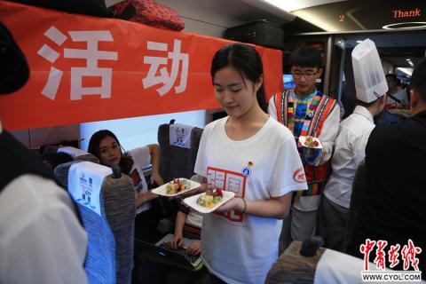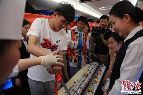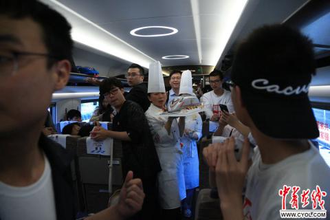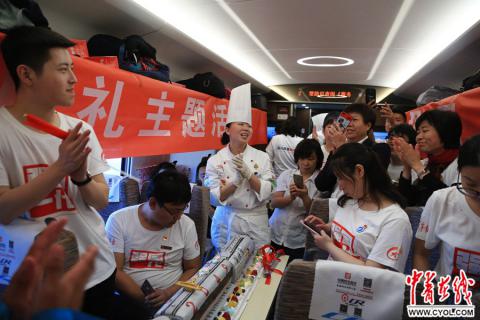 2018年5月4日,“开往2049——00后五四成人礼”大型公益活动,北京南开往上海虹桥的复兴号G7次列车,来自北京市商业学校的同学和老师制作了“复兴号”外形的蛋糕庆祝00后成年。