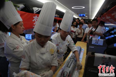 据了解,这个1.6米长蛋糕是北京市商业学校的师生花了3天的时间制作完成的。中国青年报·中青在线记者 赵迪摄