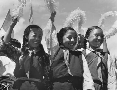 1965年9月9日,拉萨各界各族三万多人举行集会游行,热烈庆祝西藏自治区正式成立。新华社记者 马竞秋 摄