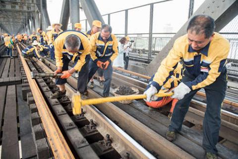 据了解,中国铁路武汉局集团有限公司所属的武汉工务大修段、武汉电务段、武汉桥工段等单位将集中利用6月13日至15日中午的“天窗”时间,对长江大桥铁路桥面的下行1.2公里区段进行钢轨更换,此项施工并不影响桥面机动车辆通行和列车正常开行。