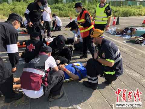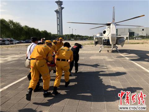 中青在线讯(中国青年报·中青在线记者刘昶荣实习生赵丹阳)8月10日下午,骄阳当空。在北京北四环外的一片空地上,来自中日友好医院(以下简称“中日医院”)和北京市红十字会999急救中心等医疗机构的34位国家航空医学救援队的急救人员正在紧张有序地抢救着“伤员”。