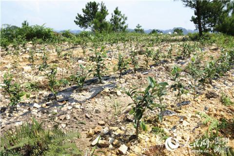 在杨埔和众多村民们的齐心努力下,今年年底,茶园的首批绿茶就可以采摘上市,杨埔告诉我们,不久前,他又流转了500亩荒山,准备开垦扩大种植。