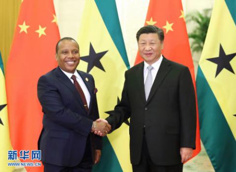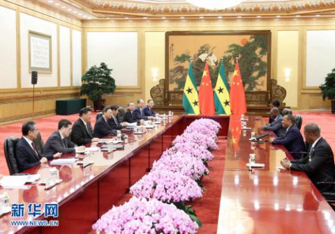 习近平指出,中非合作论坛北京峰会取得成功,有力证明了几乎所有非洲国家都是中国的好朋友。我们欢迎圣多美和普林西比回到中非友好合作大家庭。2016年12月中圣普复交以来,两国各领域合作取得丰硕成果,充分证明双方复交完全符合两国人民根本利益。中方赞赏总理先生坚持一个中国原则,积极推动对华友好合作,中国将是圣普发展道路上值得信赖的好朋友、好伙伴,我们愿支持圣多美和普林西比的经济社会发展,继续同圣普在涉及彼此核心利益和重大关切问题上相互支持。芝麻开花节节高。我们相信两国关系在一个中国原则基础上一定会不断迈上新台阶,造福两国人民。