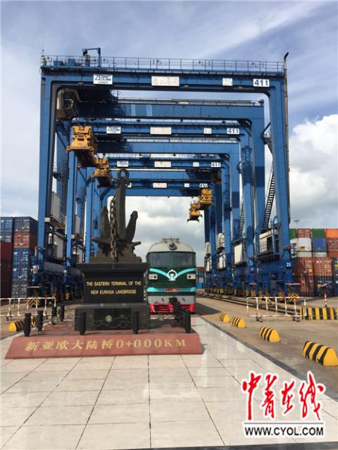 2014年5月19日,中哈两国元首在上海通过远程视频见证启用了中哈(连云港)物流合作项目一期,“一带一路”首个实体平台项目正式落地。在中哈物流基地连云港分会场,工作人员欢呼起来。满载货物的列车呼啸向西,驶向哈萨克斯坦斯坦。