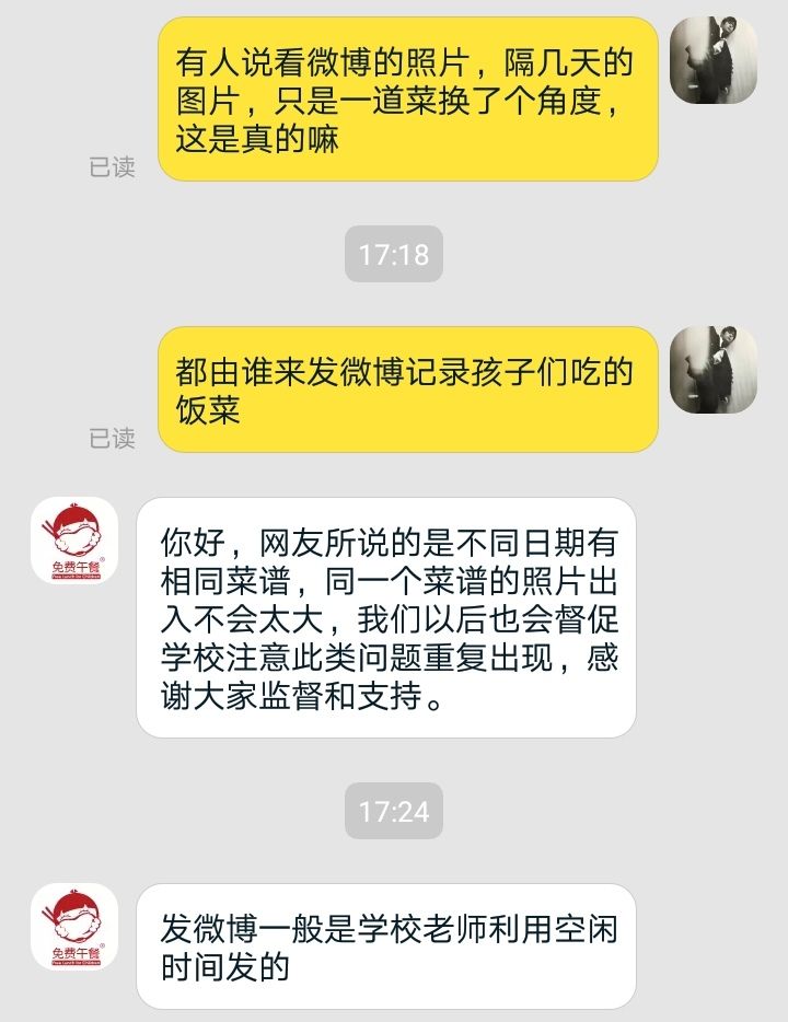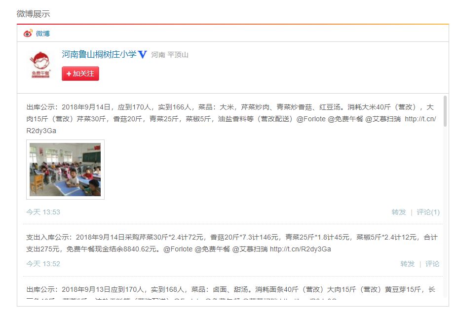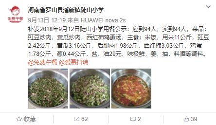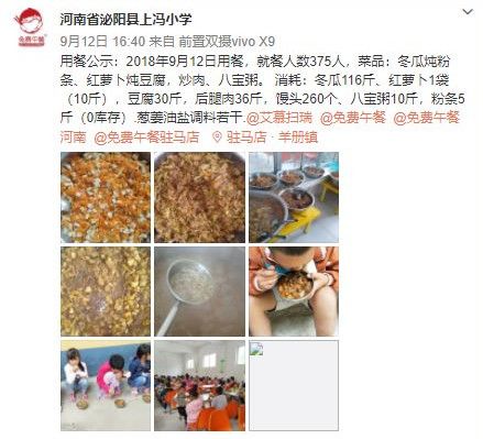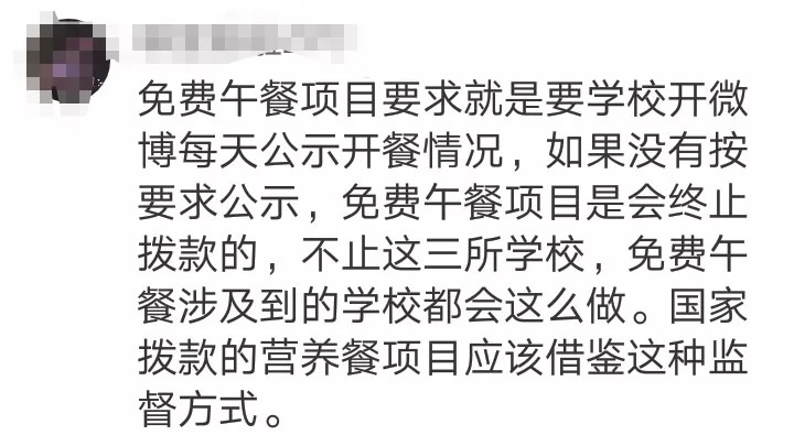 有网友在评论区指出:“免费午餐项目要求就是要学校开微博每天公示开餐情况”、“免费午餐涉及到的学校都会这么做”。