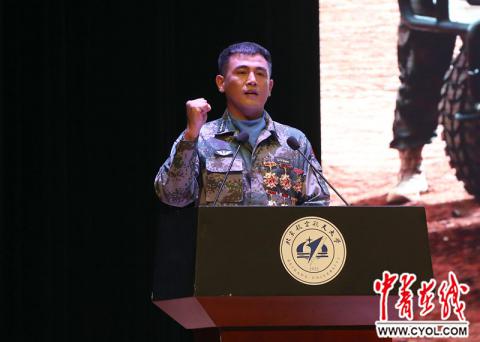 9月17日,北京航空航天大学,陆军第80集团军某旅侦察营侦察2连连长、第六批赴马里维和警卫分队快反中队中队长李庆昆做宣讲报告。